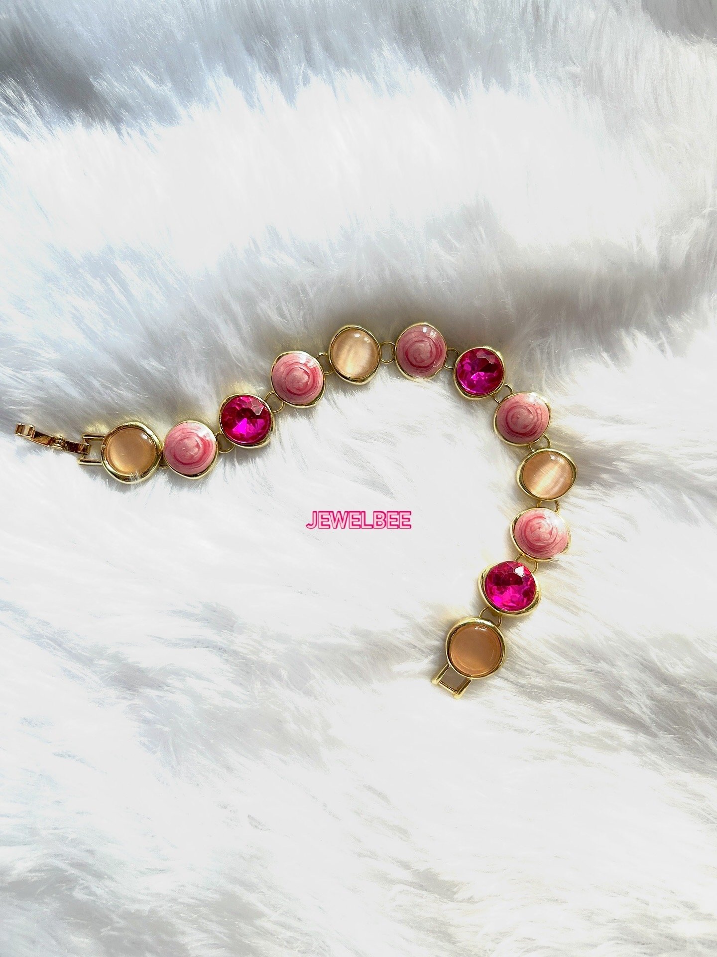 18k Gold Plated Imported Stone Bracelet – Lavender & Green