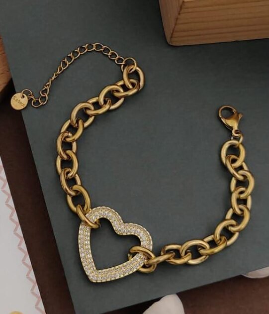 A delicate chain bracelet featuring a heart locket adorned with sparkling AD stones. Perfect for adding a touch of romance and elegance to any outfit.