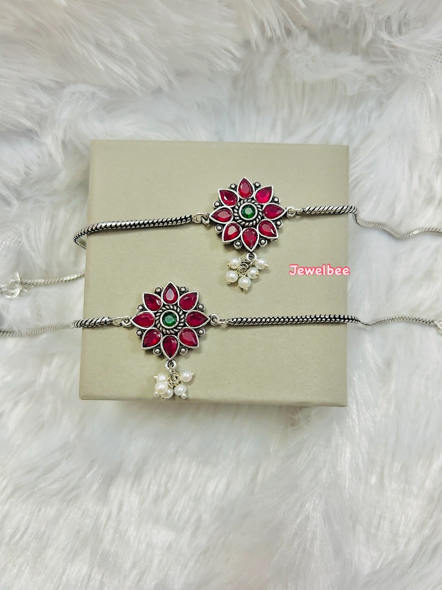 Flower Anklet with Pearls -Maroon & Green Anklet