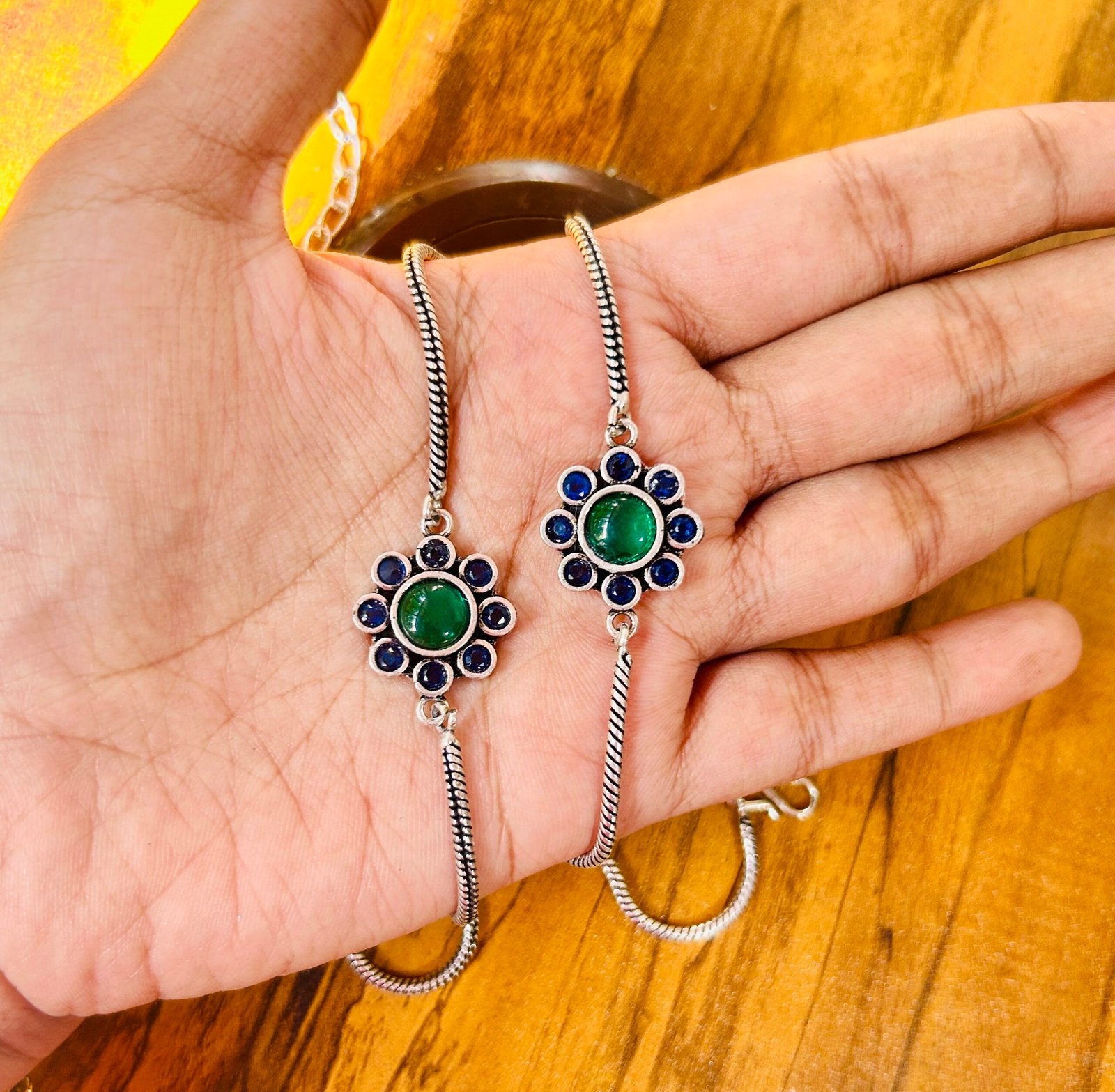 Small Flower Anklets-Green & Blue Stone Anklet