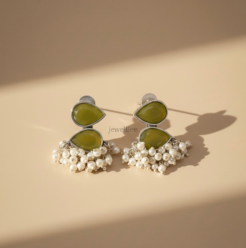HAMSINI Stone Earrings- Lemon Green