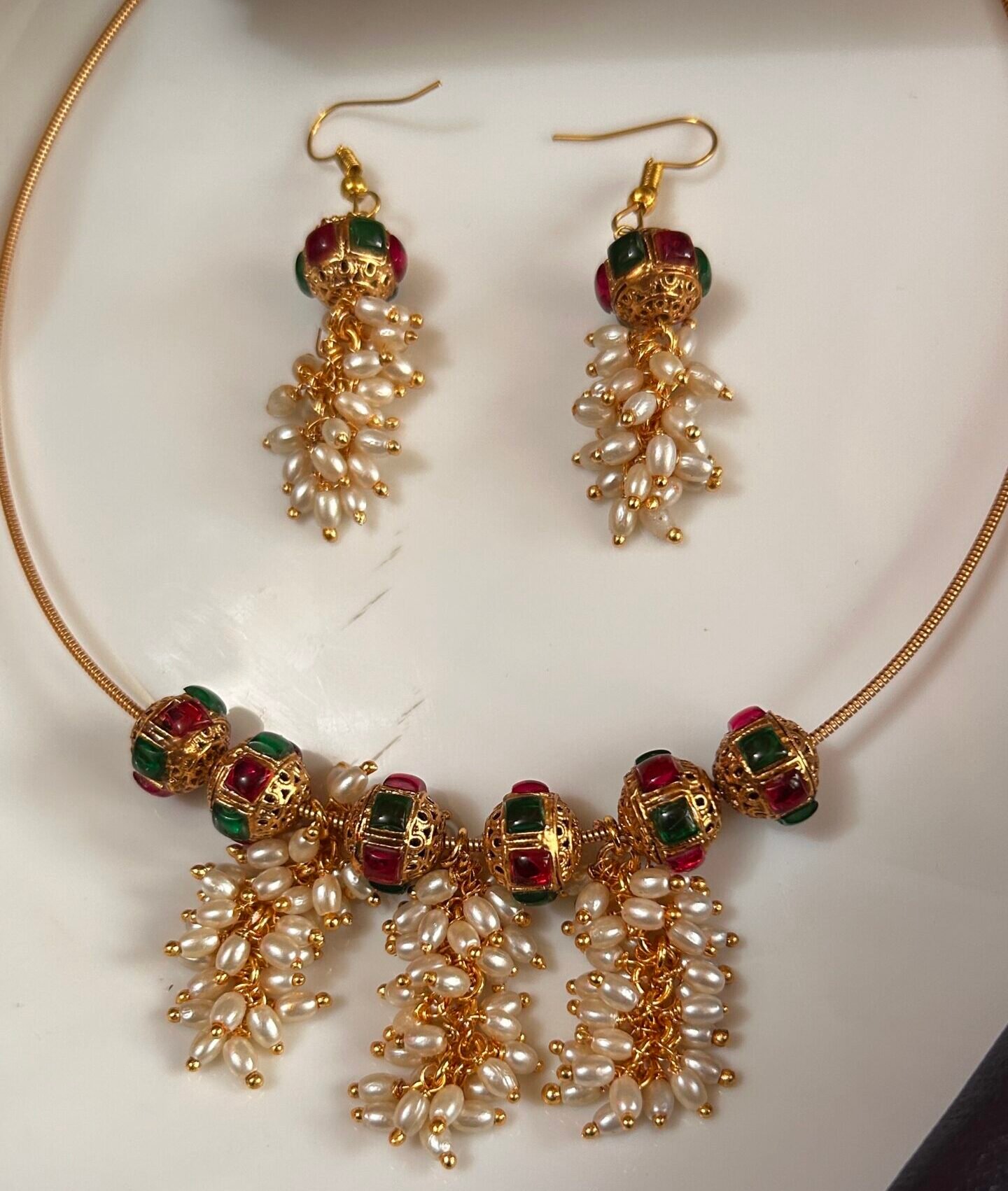A sophisticated choker featuring an elegant arrangement of pearls and sparkling stones, set with an invisible thread design for a floating effect. Perfect for adding a touch of subtle glamour to any outfit.