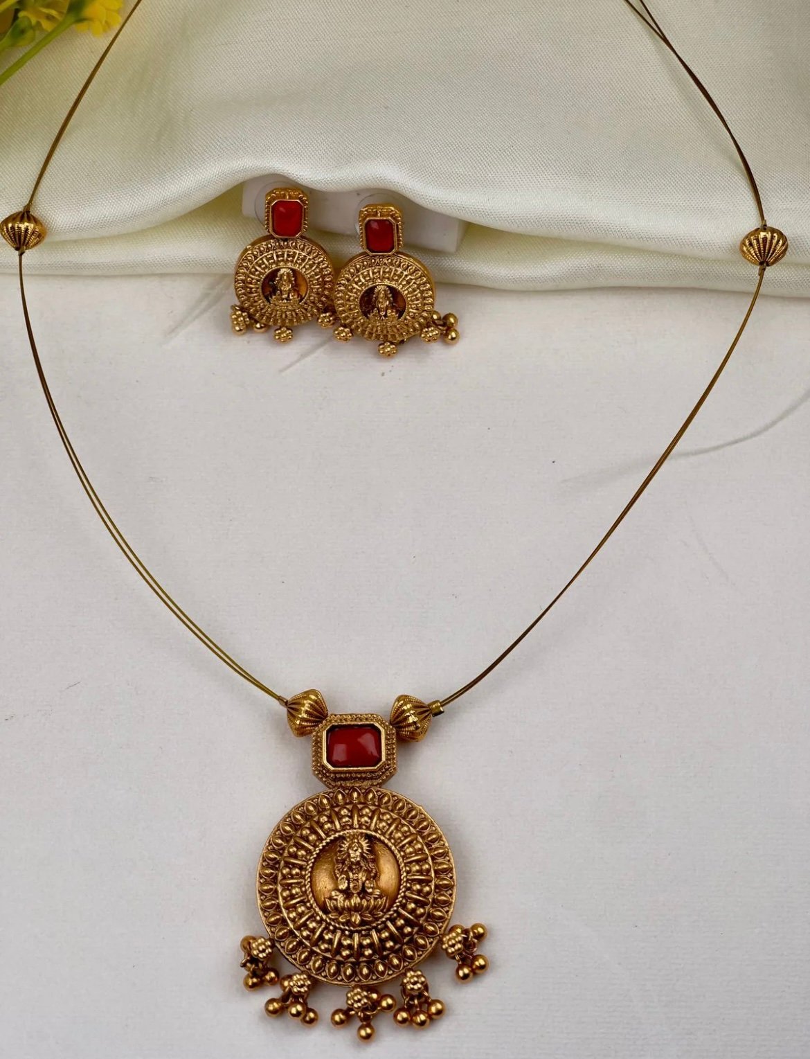 A unique choker featuring delicate Lakshmi motifs set on an invisible thread, creating a floating effect. Accented with subtle details for a timeless, ethereal look—ideal for weddings and festive occasions.