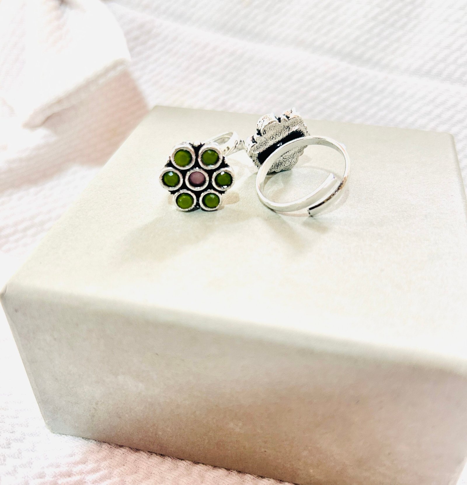Light Green & Red Pearl Flower Minchi- Adjustable Toe Ring