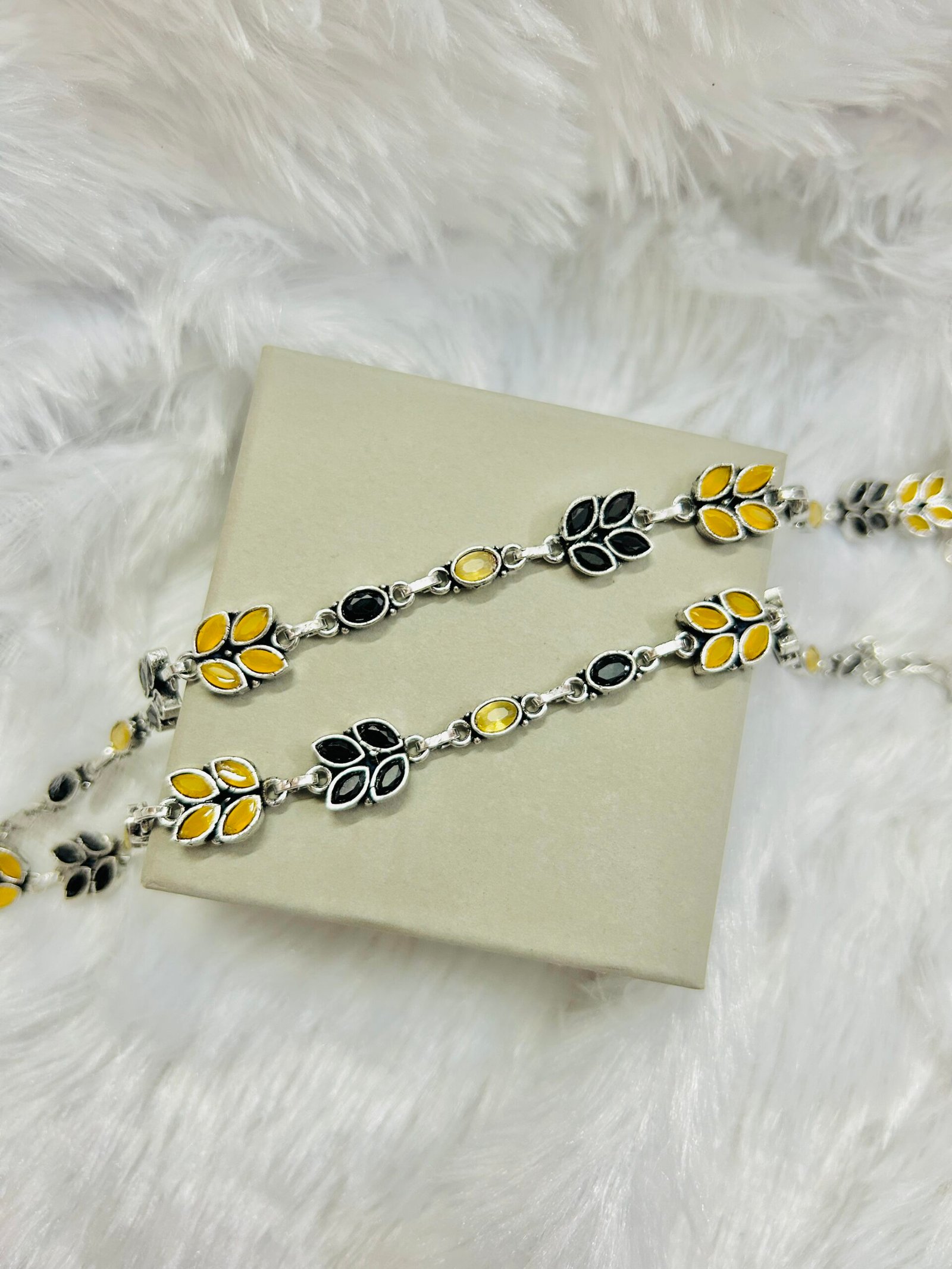 Silver Plated Harini Anklets-Black and Yellow
