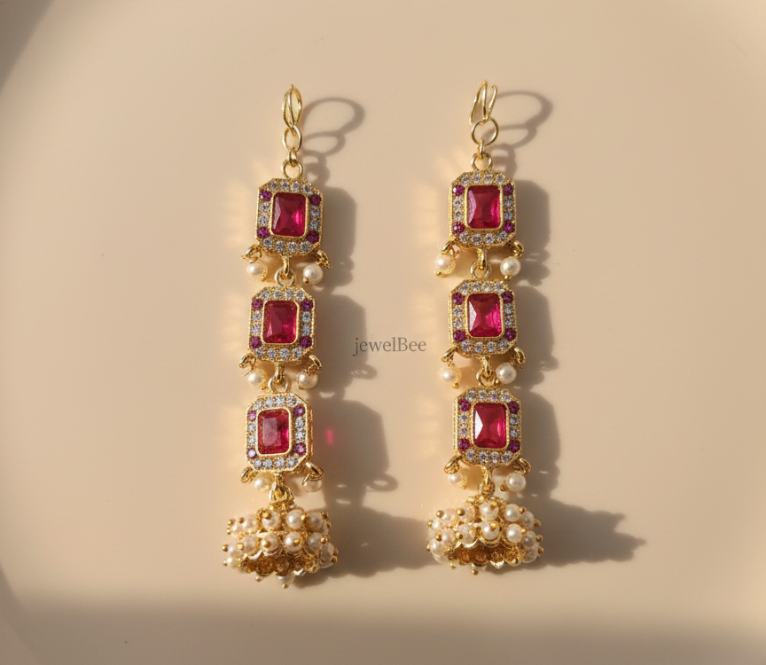 Traditional Parvathy Jhumki with Matti – RED