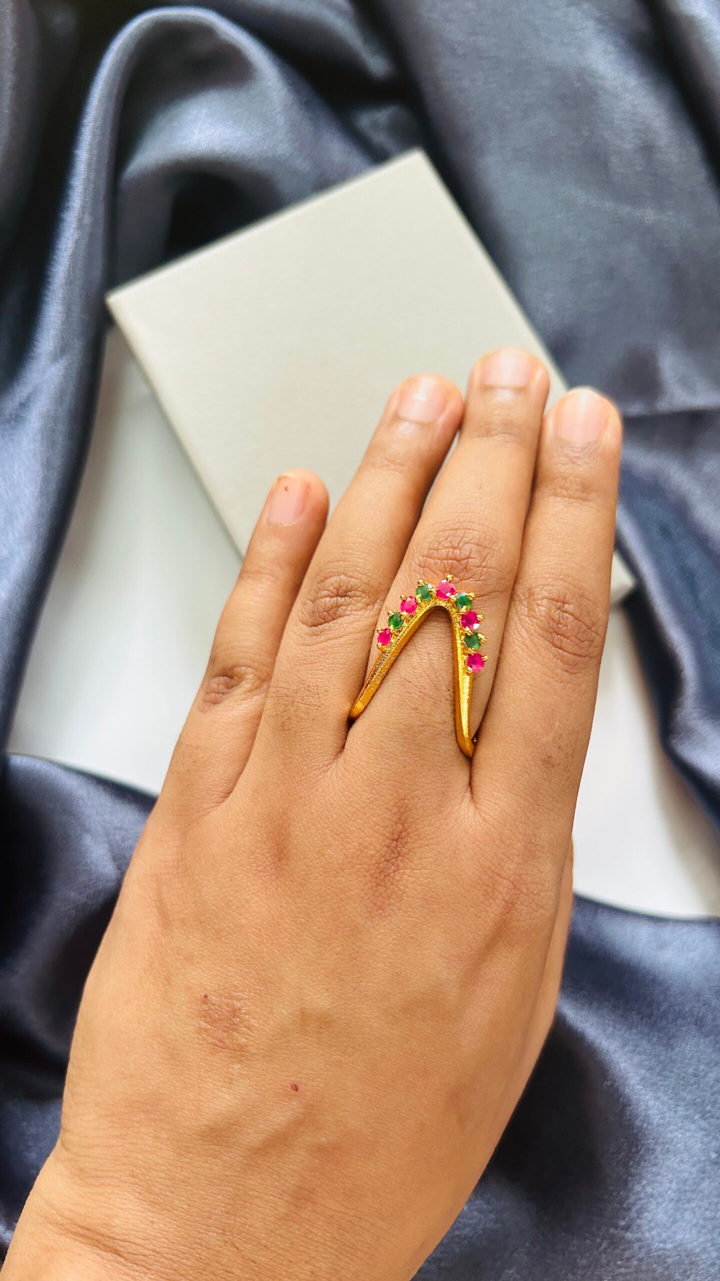 Add a touch of regal tradition to your jewelry collection with our Traditional Vangi Rings. These finger rings, inspired by ancient South Indian designs, feature intricate craftsmanship with a blend of shimmering Green and vibrant red stones. Perfect for weddings, festive occasions, and cultural events, these rings are a must-have accessory for those who appreciate timeless elegance.